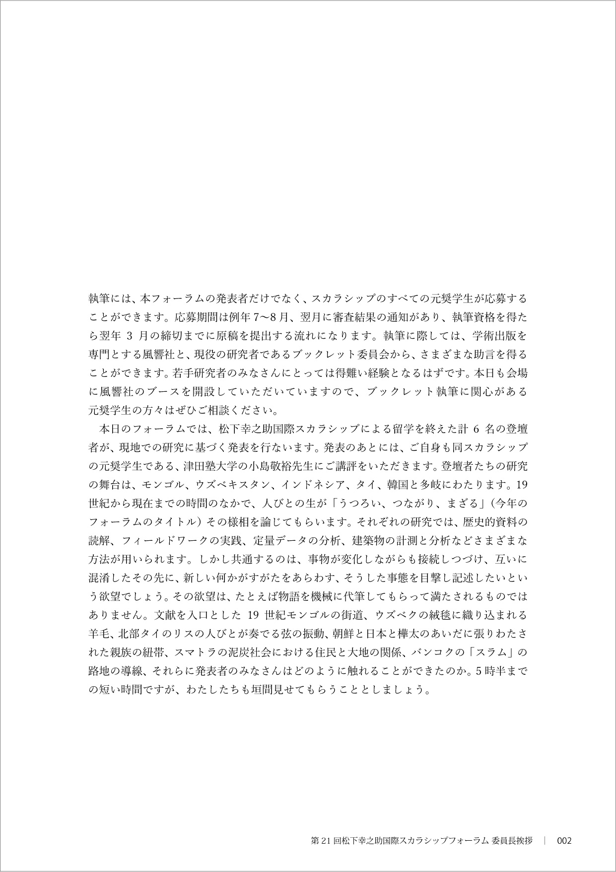 第21回 松下幸之助国際スカラシップフォーラム