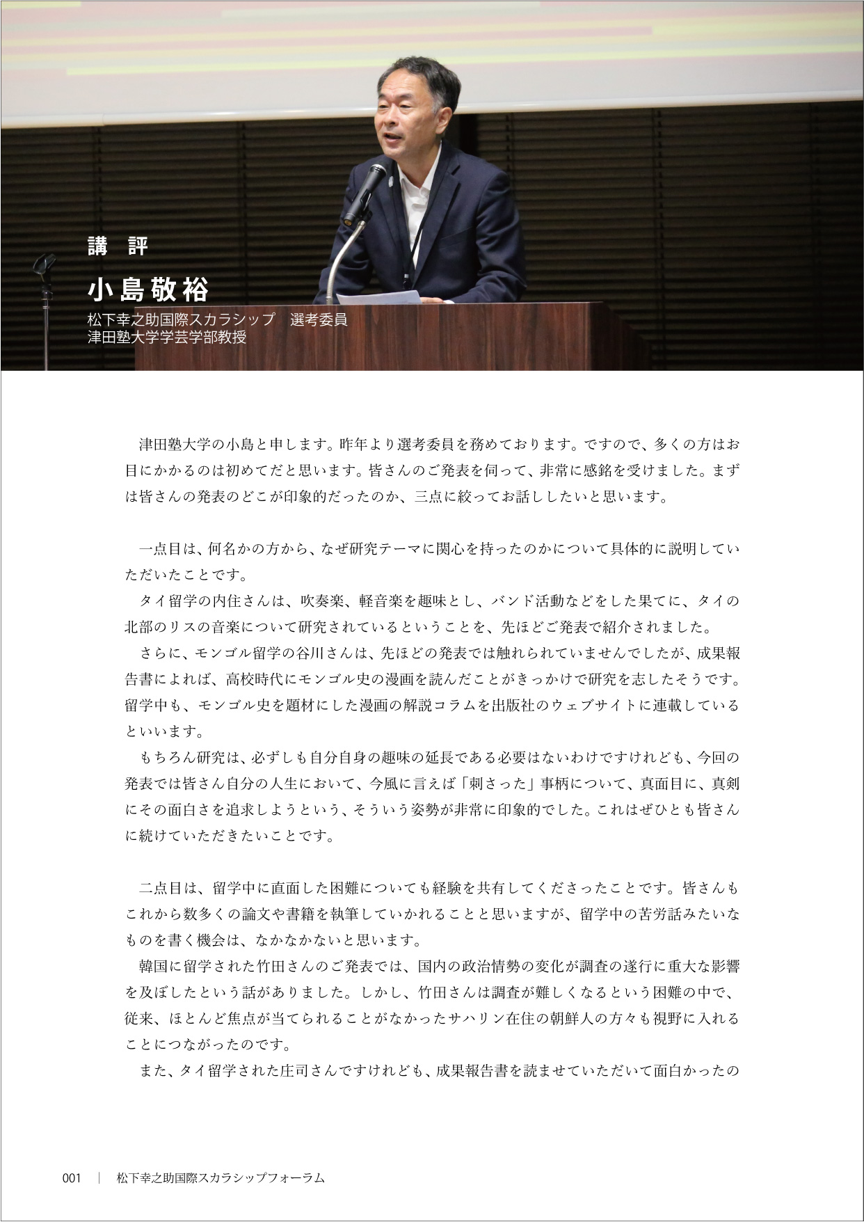 講評(津田塾大学学芸学部教授 小島 敬裕)内容を見る